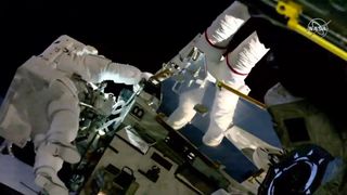 Hague and Koch did work that's similar to what was done during the previous spacewalk on March 22. During that spacewalk, Hague and NASA astronaut Anne McClain swapped out six old nickel-hydrogen batteries with three new lithium-ion batteries on another power channel at the station's P4 truss.