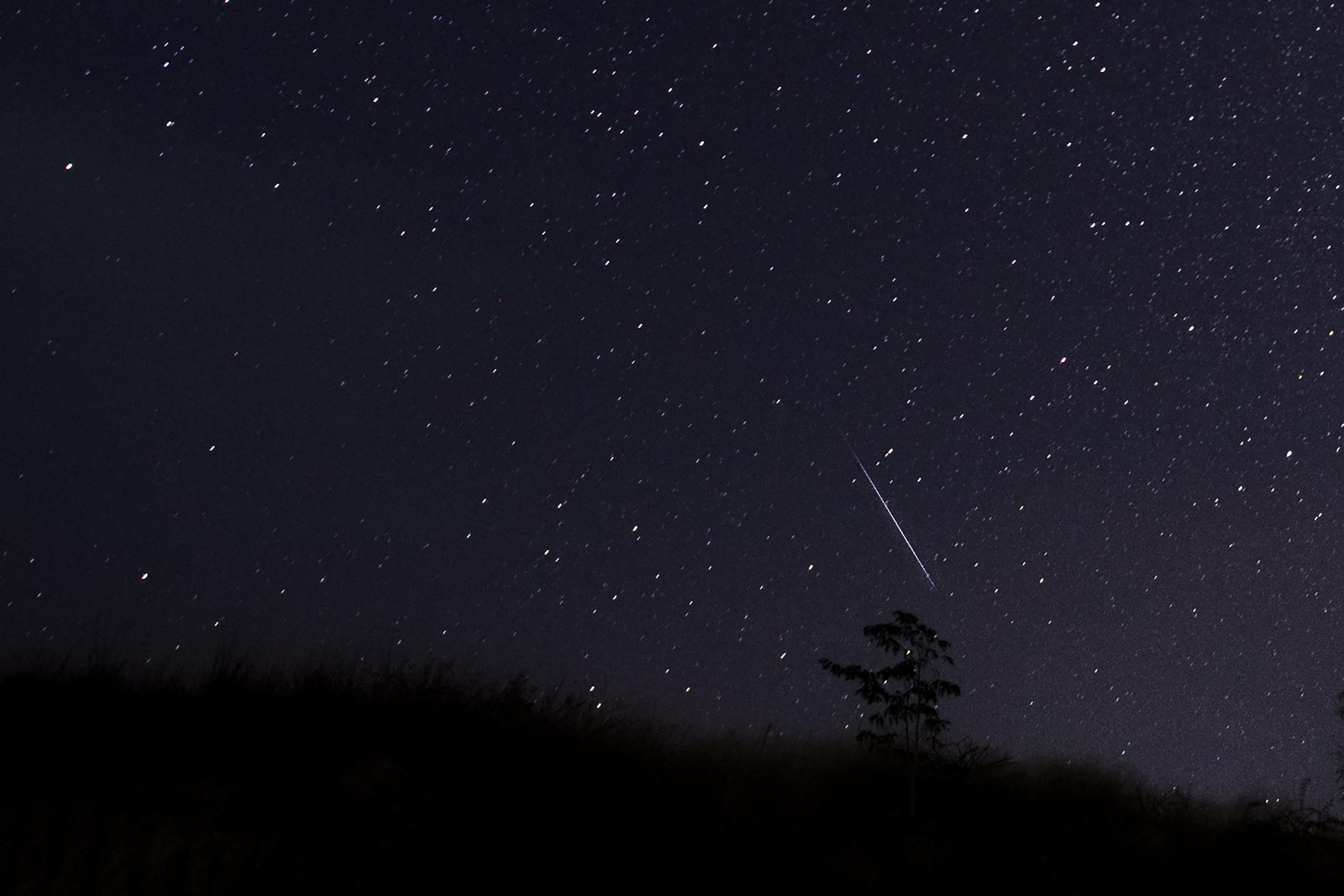 A meteor streaking through the night sky on December 14, 2018.