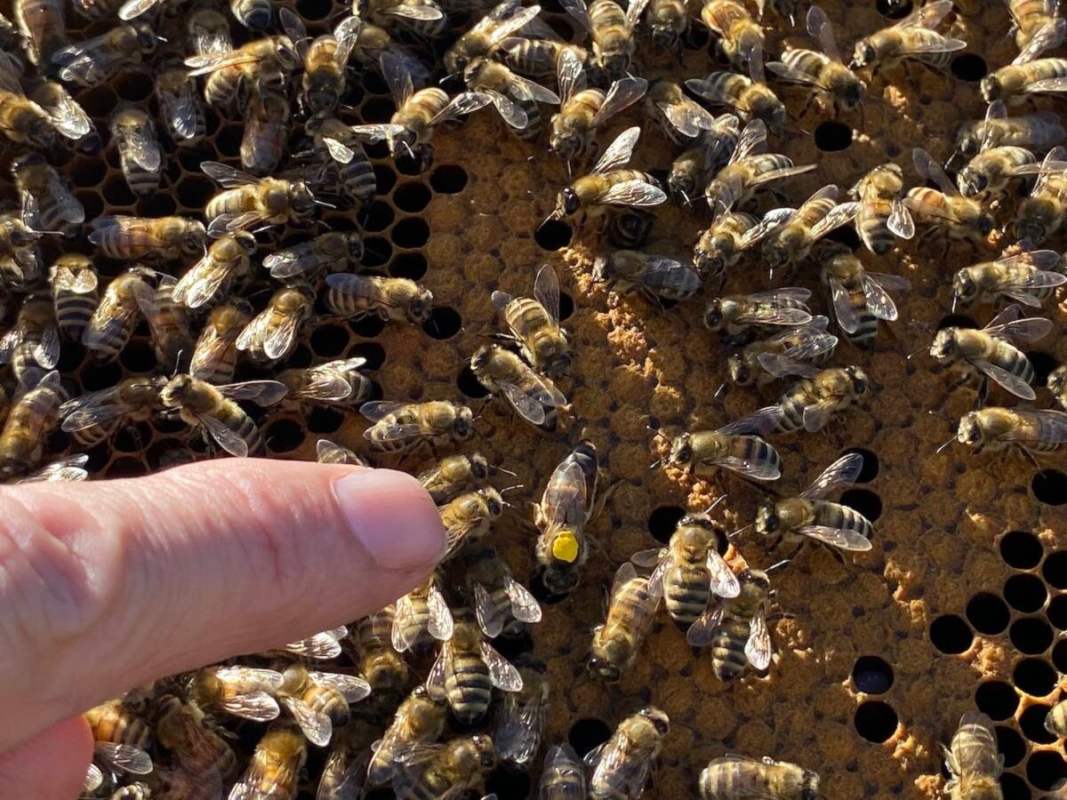 “I always call our bees here mutts,” said Cairns. “The only way to have a purebred bee is if you were on an isolated island, and that is all you had there. Bees are not native to North America, they came here in the 1600s. A virgin queen will go out and mate with 15 to 20 drones from who knows where so you end up with mutts.”