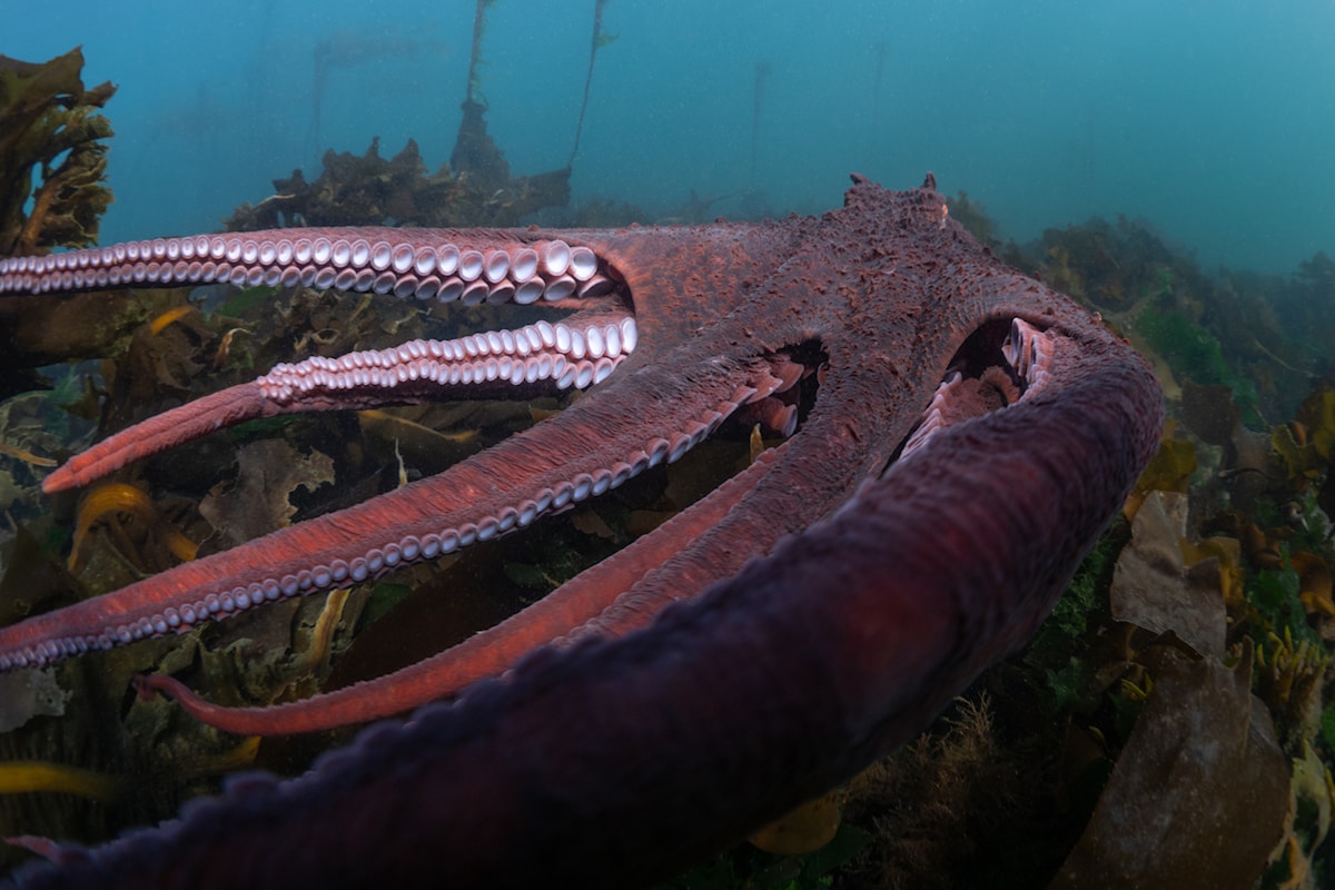 The giant Pacific octopus is the largest of the 300 species of octopuses, with an arm span that can reach up to nine metres across. This elusive cephalopod spends its life in dens nestled in caves and crevasses when it's not exploring the sea floor, hunting for mollusks, shellfish and crustaceans.